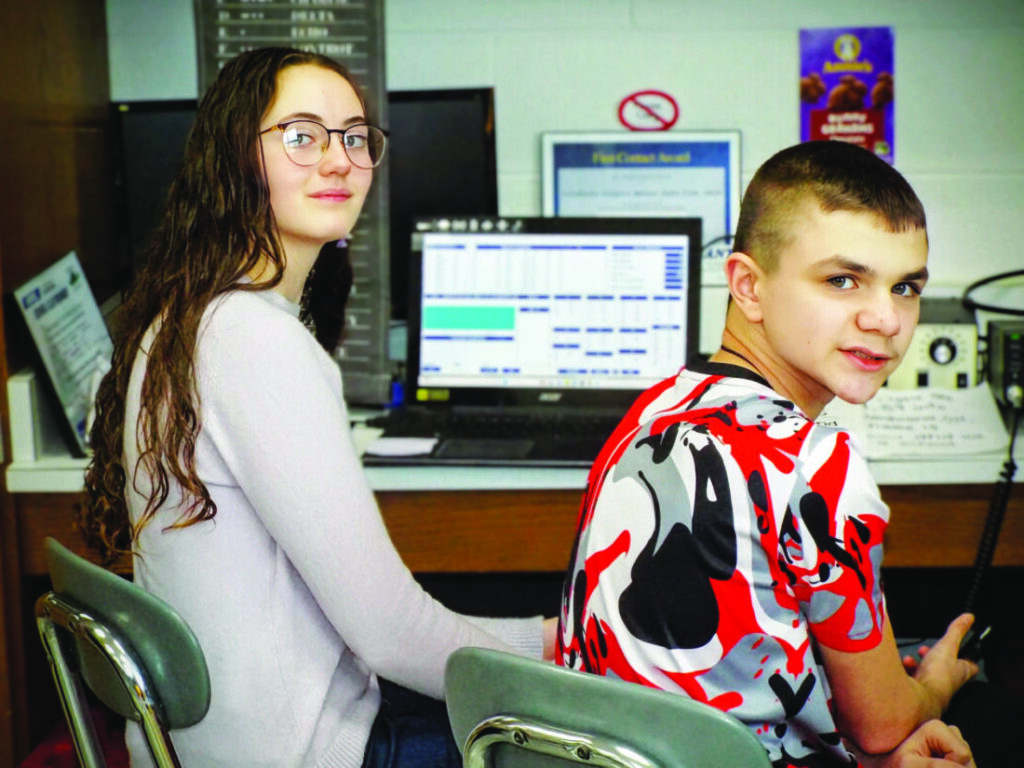shown here is Elise Campbell KE8TYU and a club member working the recent school club roundup.