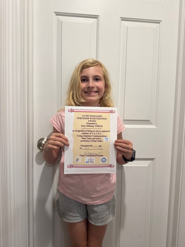 NEWEST YACHT YOUTH MEMBERS… We gained 38 new members since Jan. 1, 2025. Here are the newest 10 operators: Congratulations to all our new members, with more to come. N3DOE Hannah, W8ZLM Zoey, ND2L Hope, KF8ELQ Clark, AE4IT Otis, KE9DQL Oliver, KF8EKW Adam, KE2EEQ Gabriel, KR4FTN Maggie, VE3MOZ Maia. We would like to hear from ALL our newest members of 2025 and those who joined in previous years. Your interest and support in ham radio is much appreciated and tells the world youth is a force in amateur radio. Our youth are ALL top notch operators.